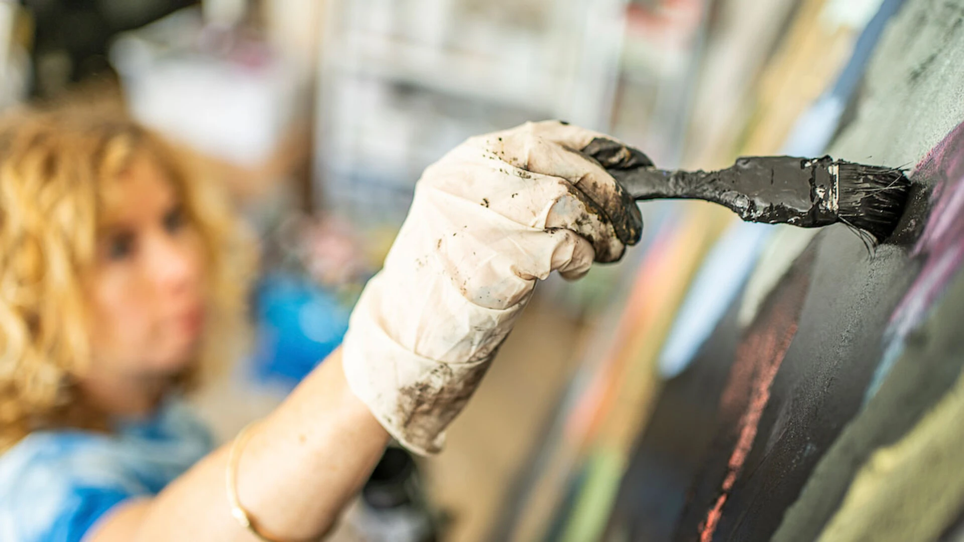 Česká malířka Lucie Jindrák Skřivánková maluje pastovitými omítkami Weber