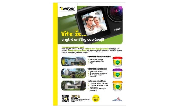 Použitím chytrých omítek se mnohonásobně snižuje riziko tzv. "zelenání fasád". Na český trh Weber dodal již 6 500 000 m2 chytrých omítek což odpovídá zhruba 37 000 rodinných domů.