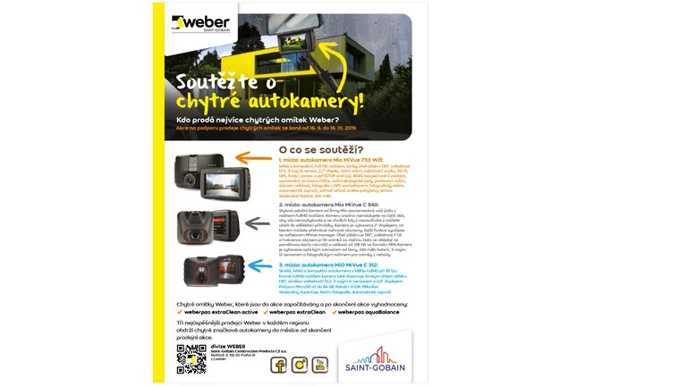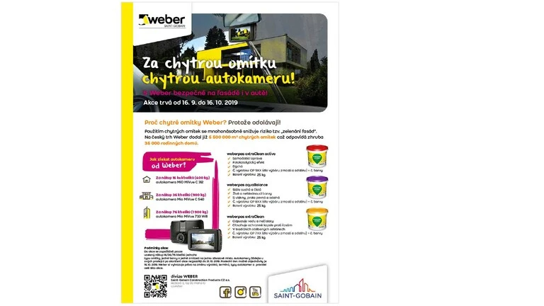 Objednejte vybrané chytré omítky Weber s dodáním na jedno prodejní místo a získejte chytrou autokameru.