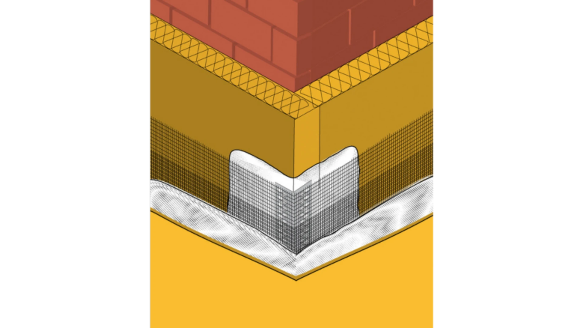 Plastový rohový profil s výztužnou skleněnou síťovinou na ochranu a zpevnění vnitřních rohů tepelně izolačního systému.