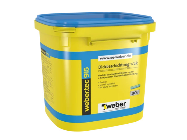Webertec 915 je asfaltová izolační stěrka pro hydroizolace sklepních stěn, podlah, základových zdí ve styku se zeminou, podzemních garáží či obrácených střech. Stěrku je možné použít na všechny běžné stavební materiály jako jsou cihly, beton, železobeton, porobeton, vápenocementové omítky či podlahové mazaniny z betonu.
